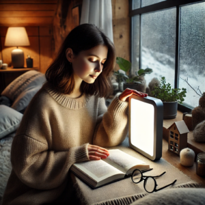 kvinde ved lysterapilampe